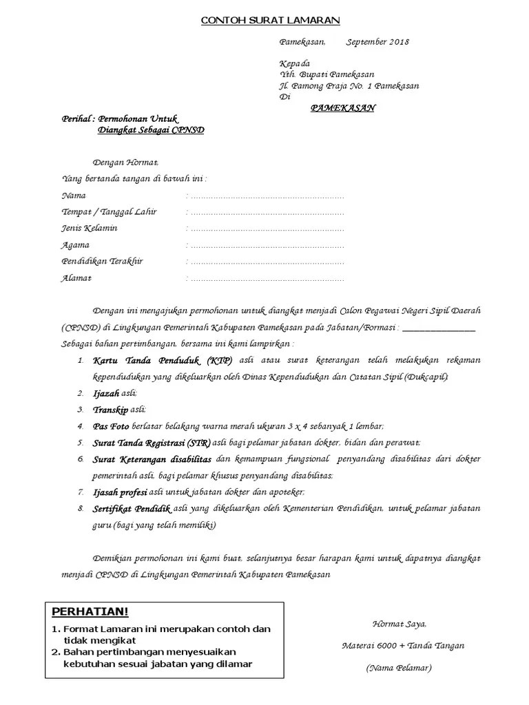 Contoh surat lamaran cpns 2019 ditulis tangan website resmi kabupaten sijunjung. Surat lamaran ( format terlampir ) ditulis menggunakan tangan . Membuat surat lamaran yang diketik dengan font arial, size 12, . Cpns dki jakarta 2021, formasi, cara daftar, contoh surat . Bagi anda yang sedang melamar lowongan kerja di aceh besar pada instansi satuan polisi pamong praja dan wilayatul hisbah.